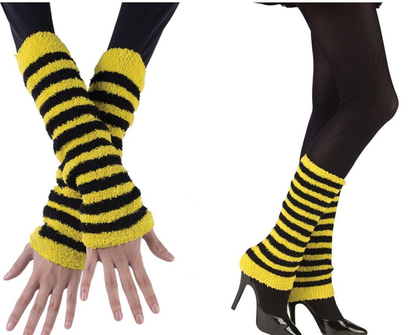 Данные аксессуары, оформленные в черно-желтую полоску дополнят образы пчелок и прочие им подобные. Можно использовать в качестве нарукавников или гетр.