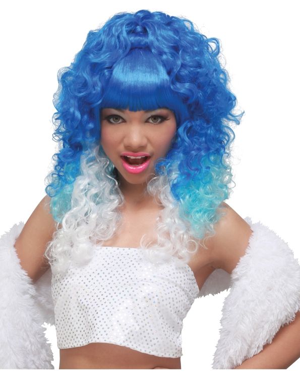 Парик рэп принцессы выполнен в голубом цвете с белыми локонами из синтетических волокон. Такой парик сможет дополнить множество клубных платье, а также рэп прикидов.