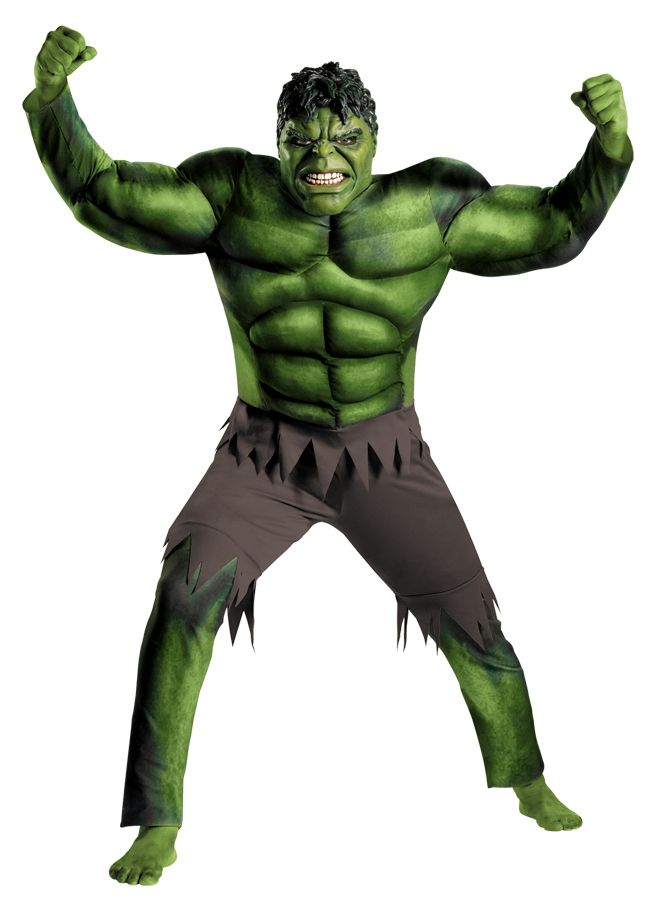 Костюм Халка включает в себя зелёный комбинезон с мускулами и латексную маску, полностью повторяющую лицо Халка. К костюму можно подобрать перчатки, зелёный грим и подобные аксессуары.