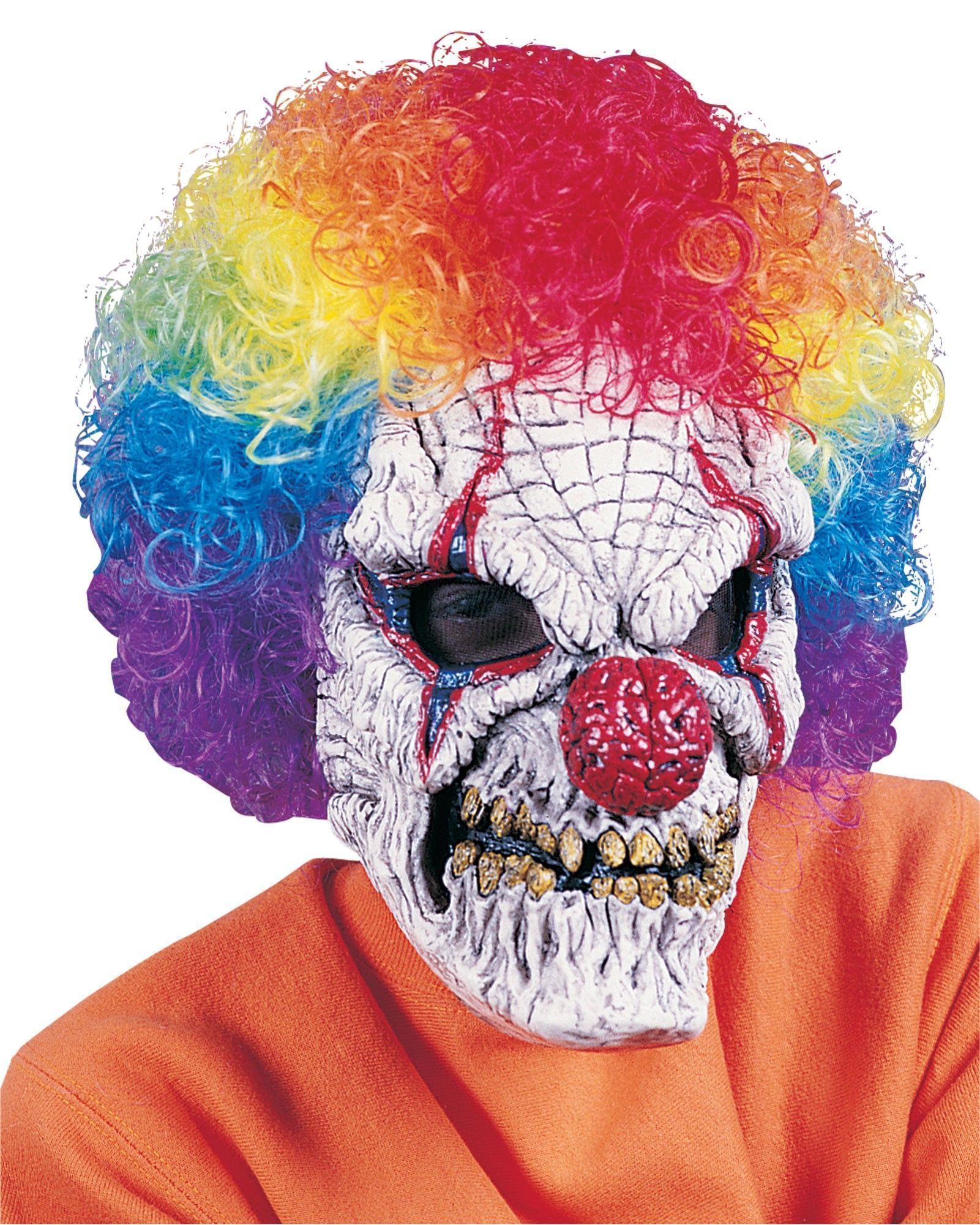 Маска злого клоуна с париком - это латексная маска, выполненная в белом цвете с рельефным рисунком, который отображает наполовину разложившееся лицо клоуна. Желтые кривые зубы, красный нос в виде мозга и шрамы у рта - все это будет бросать в дрожь любого! К маске также прикреплен яркий разноцветный парик. В прорезях для глаз имеется черный сетчатый материал.