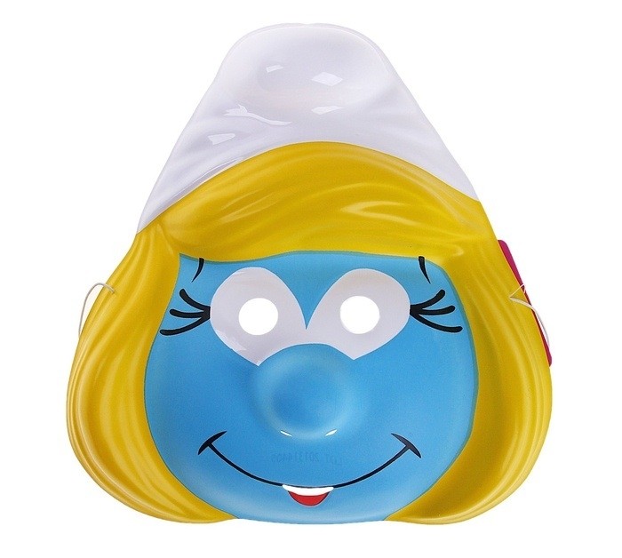 Маска Смурфетты выполнена из пластика в ярких цветах. Маска представляет собой мордочку одной из главных героинь из мультфильма про Смурфиков. Маска с тонкой эластичной резинкой для удобного ношения.