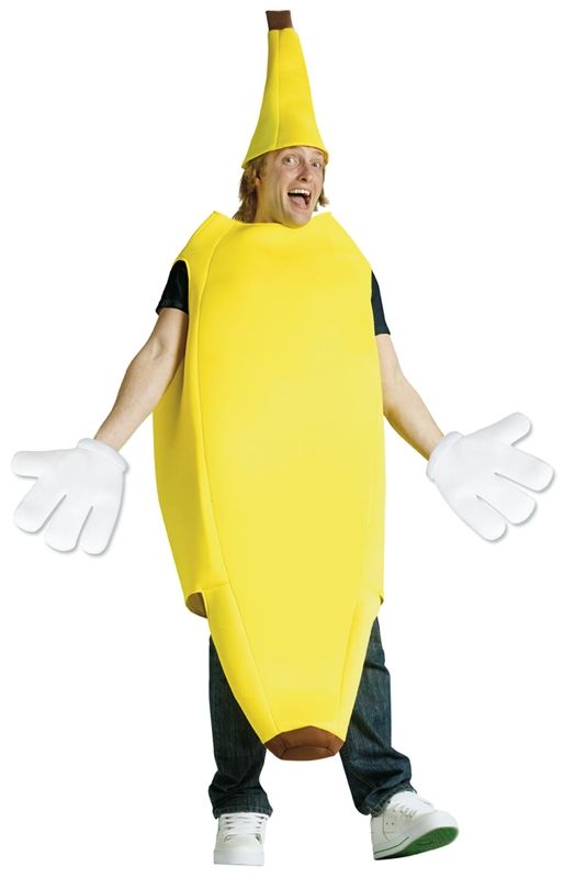 Костюм огромного банана. Шляпка входит в комплект. Перчатки в комплект не входят.(Оружие, обувь и прочие аксессуары для дополнения образа вы также найдете в нашем каталоге).Рекомендации по уходу: Только чистка по месту загрязнения.