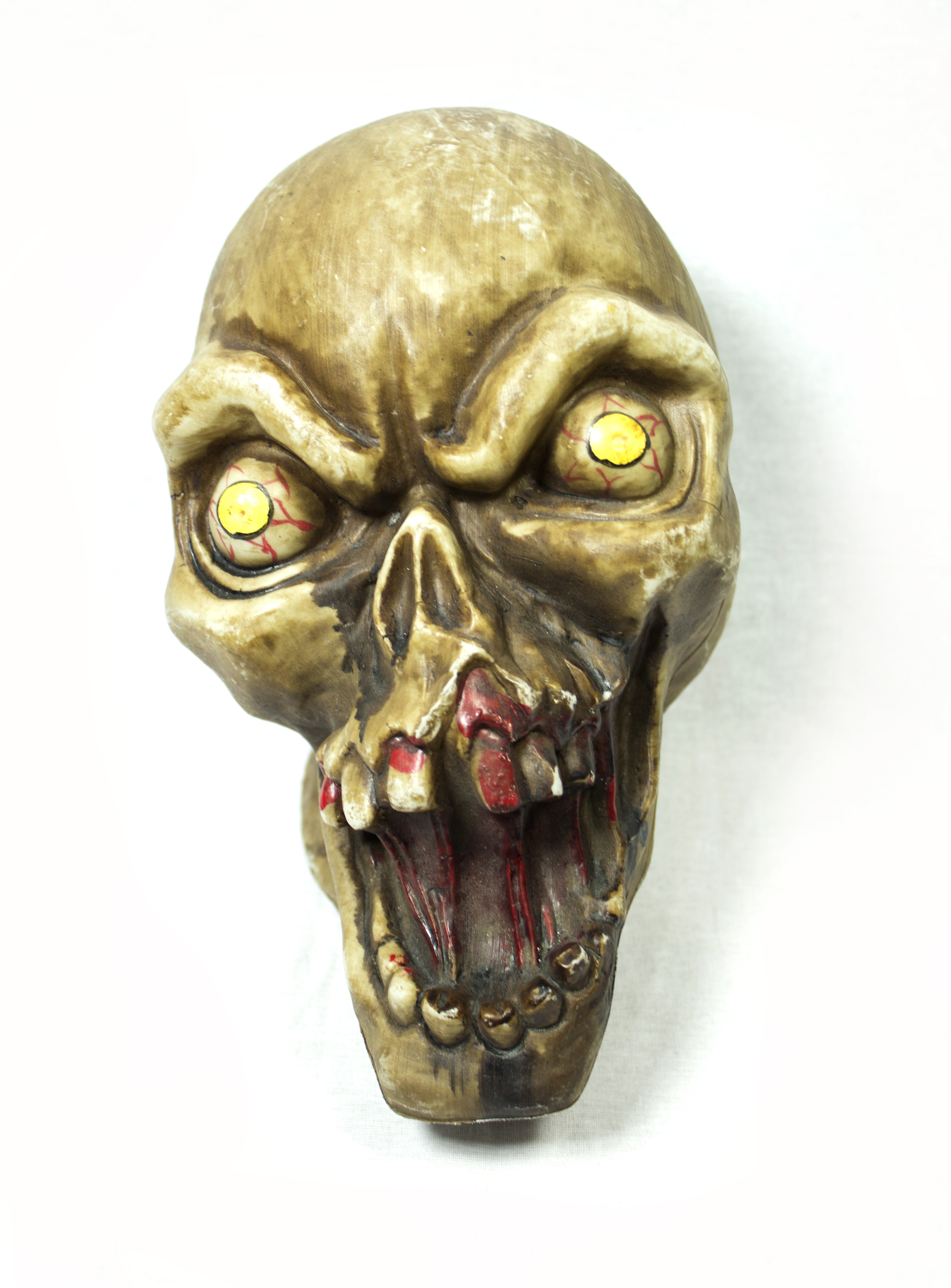 Декорация Череп с глазами - пластиковая декорация, выполненная в виде черепа с кривыми и окровавленными зубами, а также с пожелтевшими глазами.