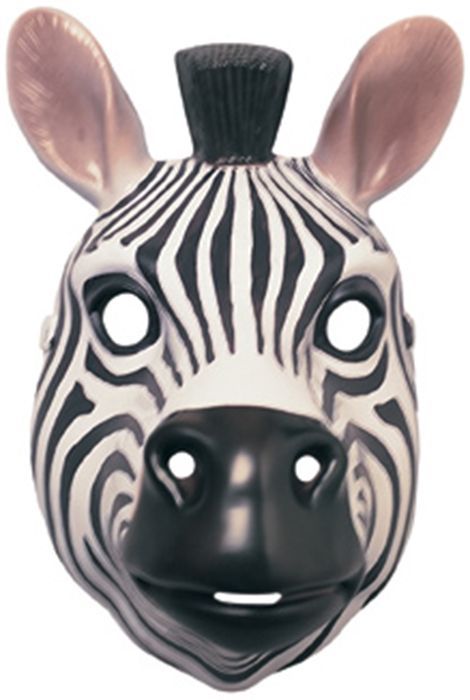 Пластиковая маска с милой мордочкой зебры. На маске имеются прорези для глаз. Маска на резинке.