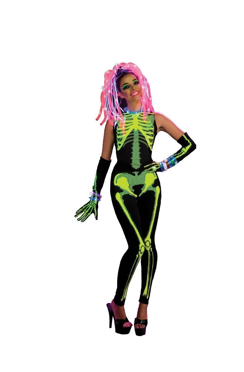 Интересный и оригинальный костюм скелета на Хэллоуин, который светится в темноте! Костюм включает в себя:топ, перчатки и леггинсы.