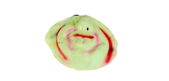 Полумаска светоотражающая с выпуклым носом и двумя зубами. Маска изготовлена из латекса и имеет размер 14х12 см.