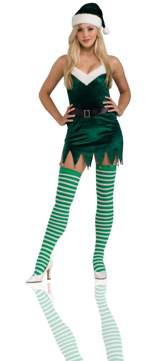 Женский костюм эльфа с колокольчиками. В комплекте: платье, шапка, чулки, пояс.