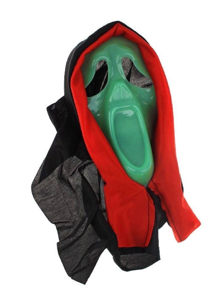 Маска Крика светоотражающая с черно-красной накидкой. Маска поможет вам в считанные секунды перевоплотиться в героя известного фильма и попугать окружающих. Размер маски 7х16х28 см