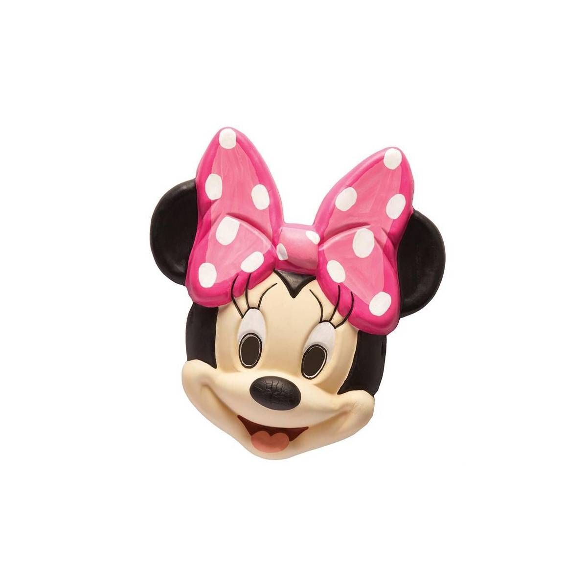 Маска Минни Маус - детская маска, выполненная в виде мордочки Минни Маус из диснеевского мультфильма. Маску украшает большой розовый бант в белый горох.