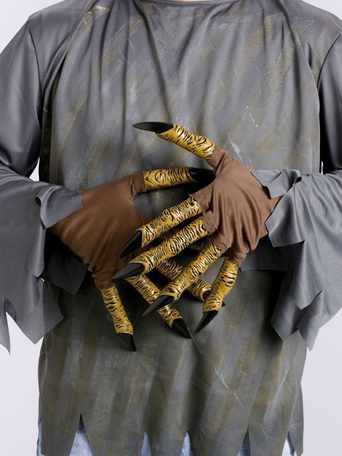 Коричневые перчатки демона с большими латексными пальцами с чёрными когтями прекрасно дополнят костюмы демонов, оборотней и подобные образы.(Оружие, обувь и прочие аксессуары для дополнения образа вы также найдете в нашем каталоге).Рекомендации по уходу: Только чистка по месту загрязнения.