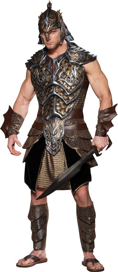 Костюм воина дракона включает в себя: кольчужную тунику, виниловый нагрудник с изображением дракона, виниловый шлем, юбка, манжеты, накладки на ноги. Оружие в комплект не входит, но его можно приобрести отдельно.