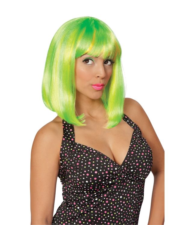 Парик тропической красотки выполнен из синтетических волос, которые окрашены в яркий зелёный и лимонный цвет. Такой парик подойдёт для клубных вечеринок и прочих мероприятий.