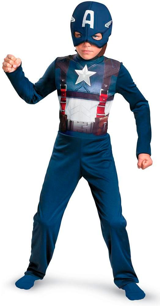 Костюм Капитана Америки состоит из маски и комбинезона. Для полноты образа этого легендарного представителя вселенной Marvell можно приобрести щит.