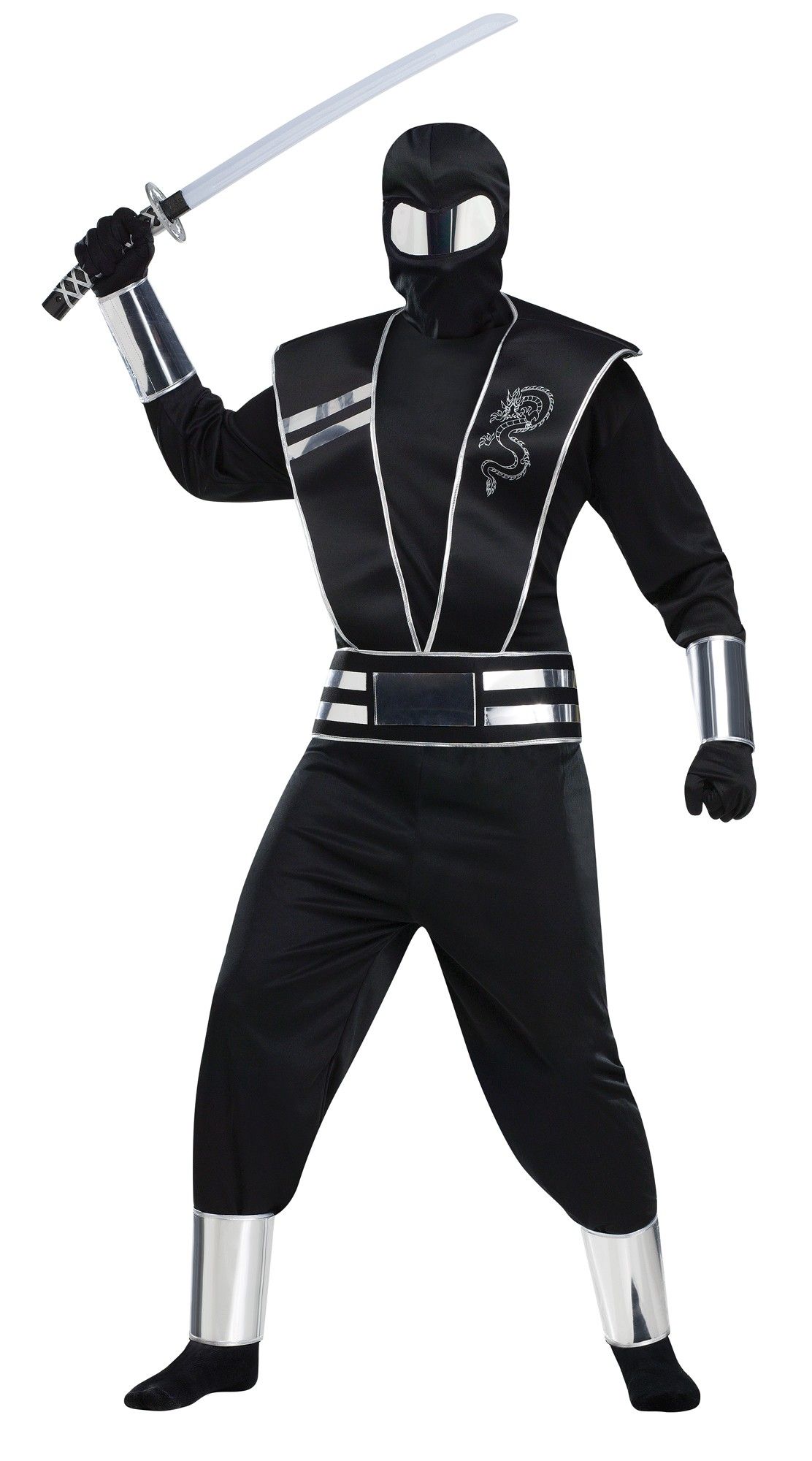 Костюм Зеркального Ниндзя включает в себя черны брюки, кофту с длинными рукавами, туника с пришитым поясом и серебряной отделкой, туника с изображением дракона на груди. Также комплект дополняют зеркальные накладки на лодыжки и запястья, черные перчатки и черный капюшон с зеркальной маской на глаза.