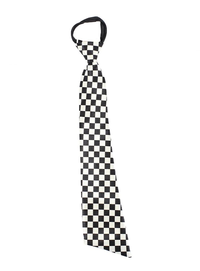 Черно-белый галстук на молнии - длинный галстук в шашечку. С обратной стороны имеется молния для регулирования размера петли.