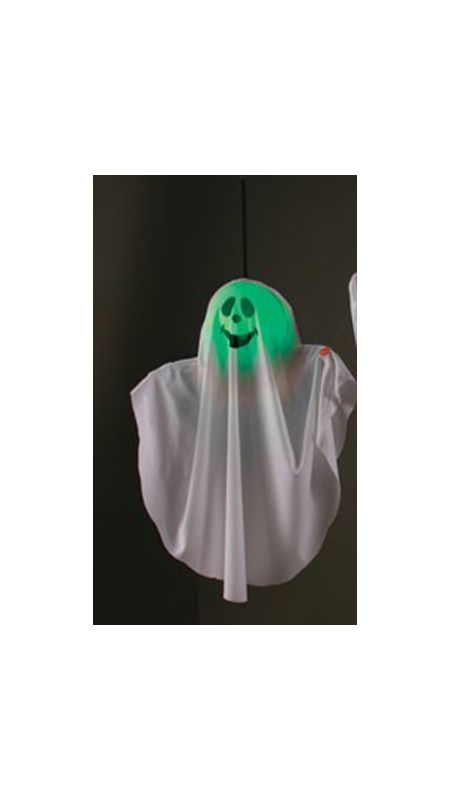 Подвесное счастливое привидение - это хорошее украшение вашего дома на Хэллоуин. Светящаяся голова, счастливое выражение лица и белый лёгкий материал - всё это составляющие подвесного привидения. Его можно повесить около входа и в любом другом месте.