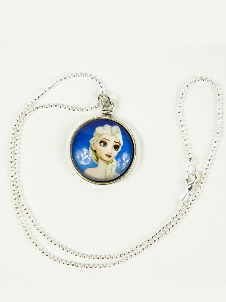 Синяя подвеска Холодное Сердце - представляет собой круглую подвеску на тонкой серебряной цепочке. Подвеску украшает портрет Эльзы из мультфильма "Холодное сердце". С обратной стороны подвеска выполнена в виде имитации часов.