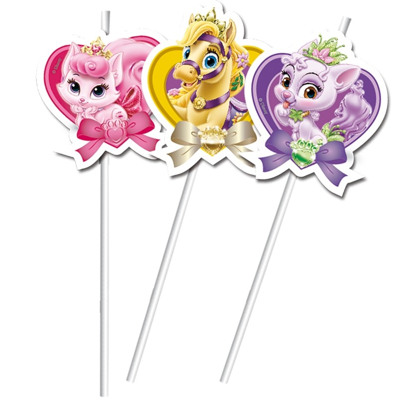Соломинки для напитков Диснеевские питомцы - отличное дополнение к детскому празднику. В набор входит 6 соломинок, которые украшены питомцами Диснеевских принцесс.