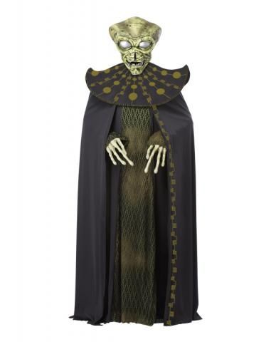 Инопланетяне не хотят быть нашими друзьями, они наблюдают за людьми, чтобы в последующим вторгнуться на нашу Землю и захватить человечество. Костюм вероломного пришельца - это ужасающая маска, длинный черно-зеленый балахон, воротник и перчатки. Костюм можно надеть на Хэллоуин, Пятницу 13 или корпоратив.