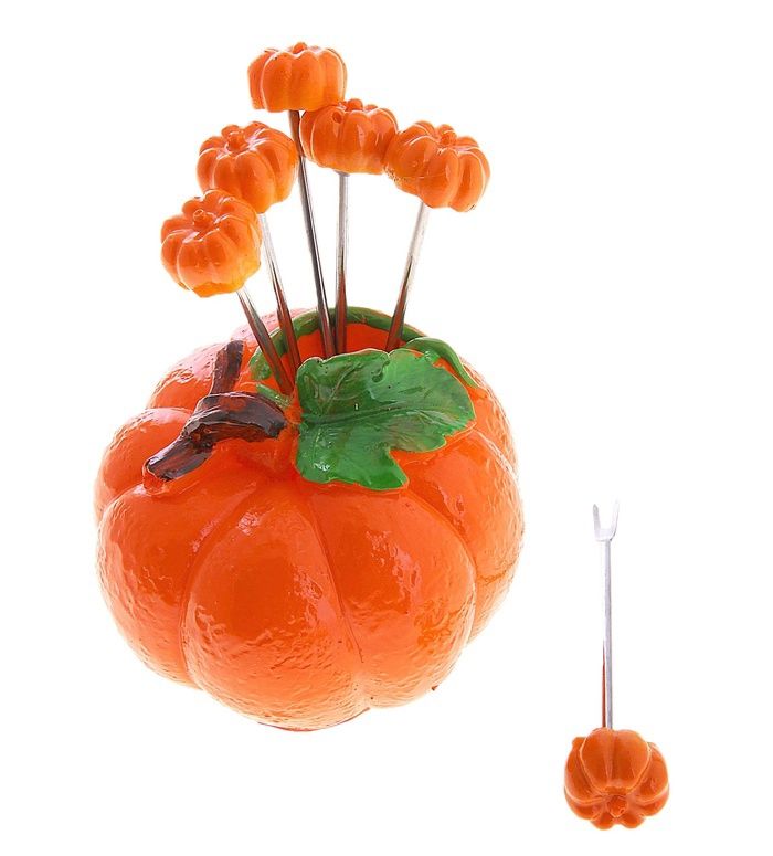 Набор шпажек для сервировки Тыква помогут оригинально украсить Ваш праздничный стол. Шпажки изготовлены из металла и украшены пластиковыми оранжевыми наконечниками в виде тыкв. Создайте свое неповторимое пиршество в ночь Хэллоуина!