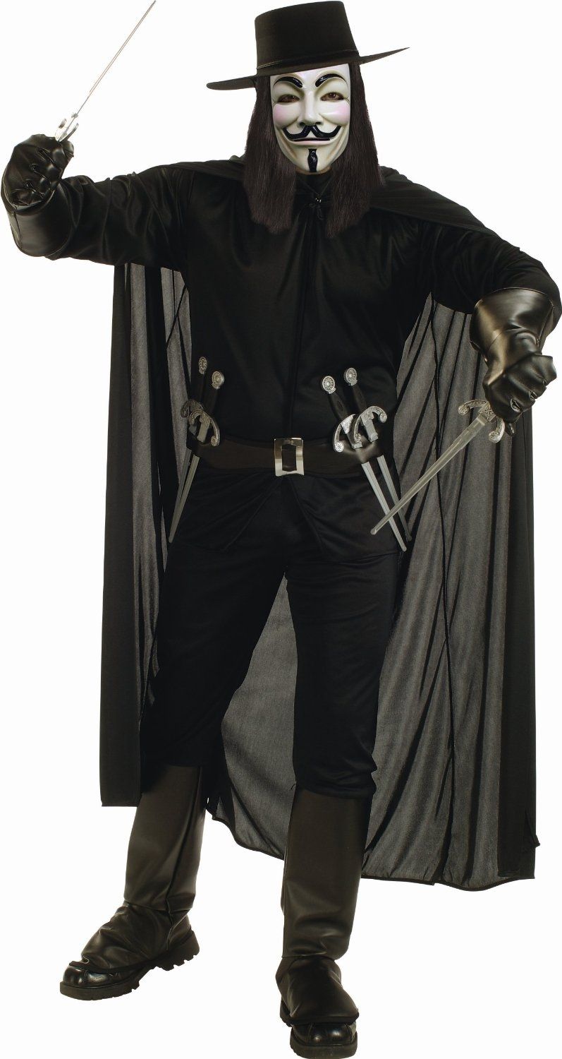 Любопытный прикид, который подойдет многим, но особо скрасит реальность особо угрюмым в душе людям, которым очень по вкусу придется "вечно улыбающаяся" маска. В костюм Вендетты входят: рубашка, брюки, плащ, шляпа, маска, пояс и 6 кинжалов. (Оружие, обувь и прочие аксессуары для дополнения образа вы так-же найдете в нашем каталоге).