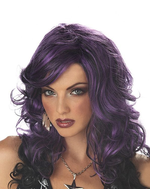Фиолетовый парик рок-девушки. Только хард-рок и ничего больше.Материал: 100% синтетическое волокно.Рекомендации по уходу: Не использовать средства для укладки с высокой температурой, потому что это может привести к повреждению синтетического волокна. Возможно использование бигуди и лака для волос.