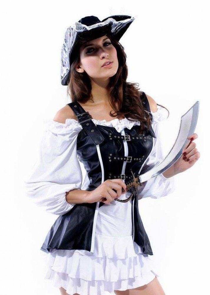 В костюм опасной пиратки входят платье, корсет, шляпа, накладки на ноги. Материал: акрил + PU