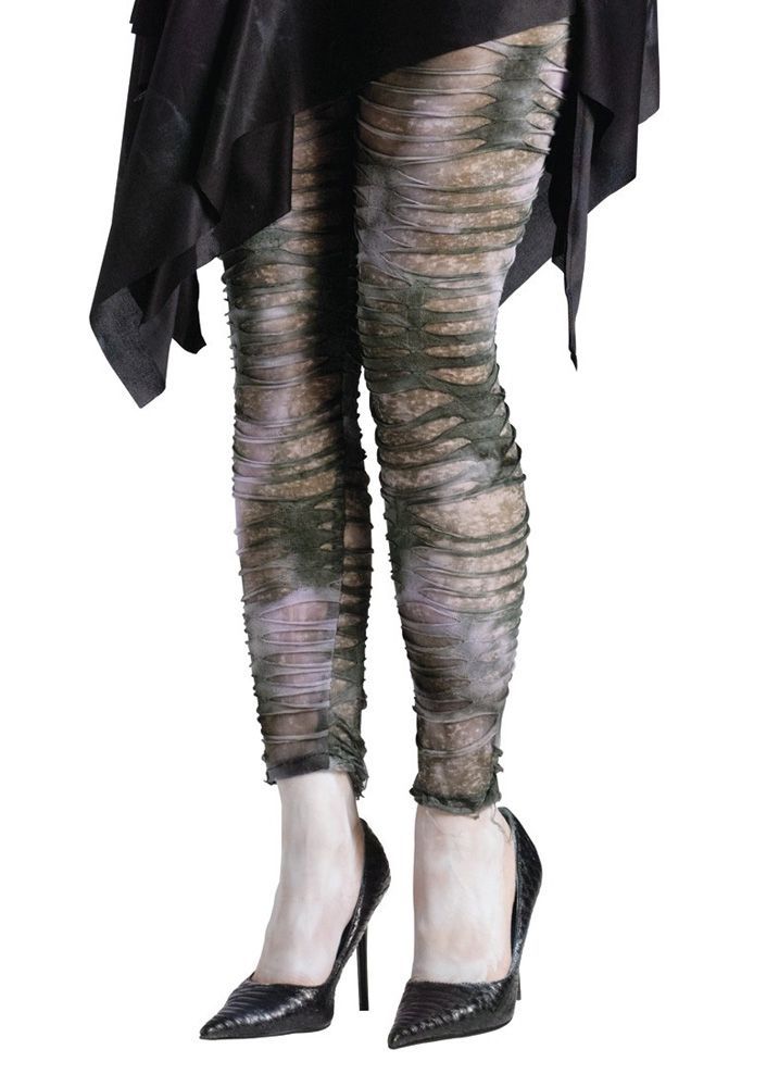 Леггинсы для зомби - прекрасное дополнение для женских костюмов зомби. Леггинсы по щиколотку выполнены в зелено-серых тонах. На леггинсах имеется множество аккуратных дырок.