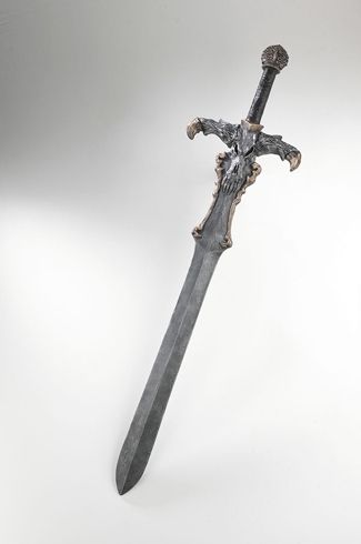 Такой огромный меч подойдёт только смелым рыцарям и воинам. Меч выполнен в серых тонах с золотыми вставками. Длина меча около одного метра.