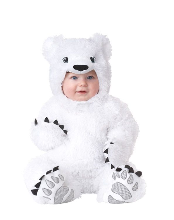 В костюме белого мишки можно легко согреться. Комбинезон с колпаком сделан из мягкой ткани, особенностью являются вшитые глаза, варежки прилагаются, застежки на ногах для более удобного одевания.