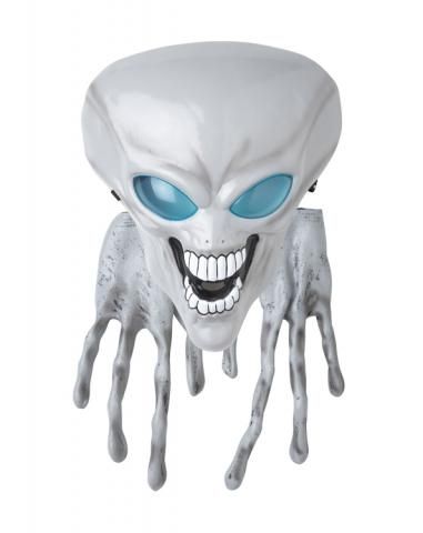 Набор серого пришельца включает в себя маску с голубыми жуткими глазами и челюстью, а также перчатки-руки с длинными тонкими пальцами.