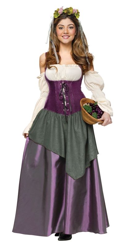 Костюм девушки из таверны - это прекрасное длинное платье в крестьянском стиле и венок из цветов на голову. Этот костюм прекрасно подойдёт для карнавалов, маскарадов, тематических вечеринок и прочих мероприятий.