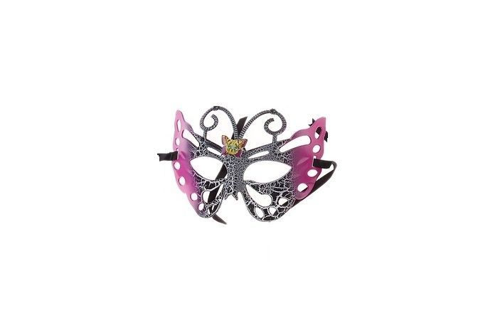 Маска ночного мотылька черно-розовая со светящимся мотыльком на усиках. Маска станет прекрасным дополнением к карнавальному костюму бабочки. Маска изготовлена из пластика и имеет размер 12х20 см.