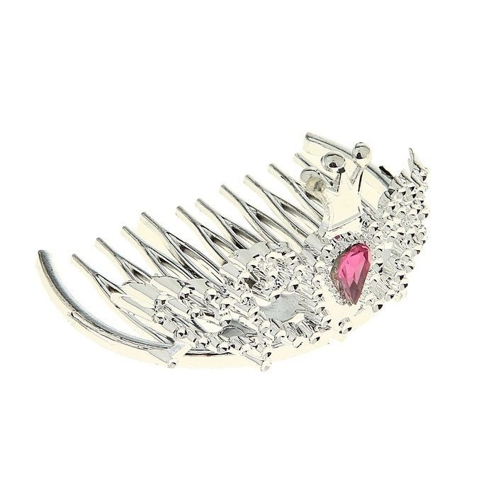 Корона серебристая с камнем по центру крепится при помощи гребешка. Оригинальный аксессуар для вечеринки или в качестве сувенира. Корона изготовлена из пластика и имеет размер 5х7х4 см.