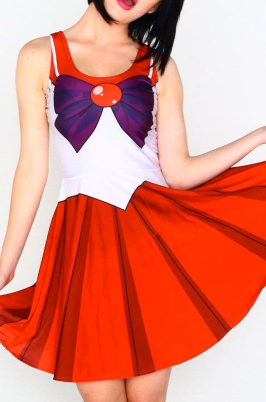 Красное платье Сейлор Мун станет отличным подарком любительнице аниме, отлично подчеркивает фигуру. Украшено принтами с бантами. Осталось только завести волшебную кошку.