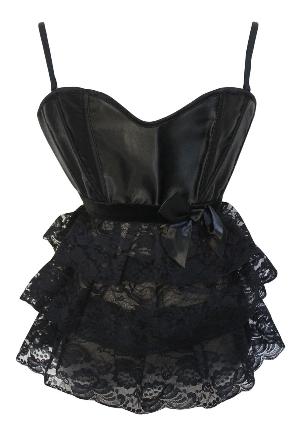 Сексуальный корсет на регулируемых бретелях отлично подчеркивает изящность фигуры. Низ украшен кружевной тканью, также корсет декорирован бантом.