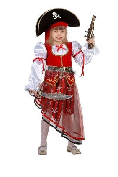 Костюм пиратки детский. Комплект: блуза, юбка, шляпа, сабля и пояс (платок на голову в комплект не входит).