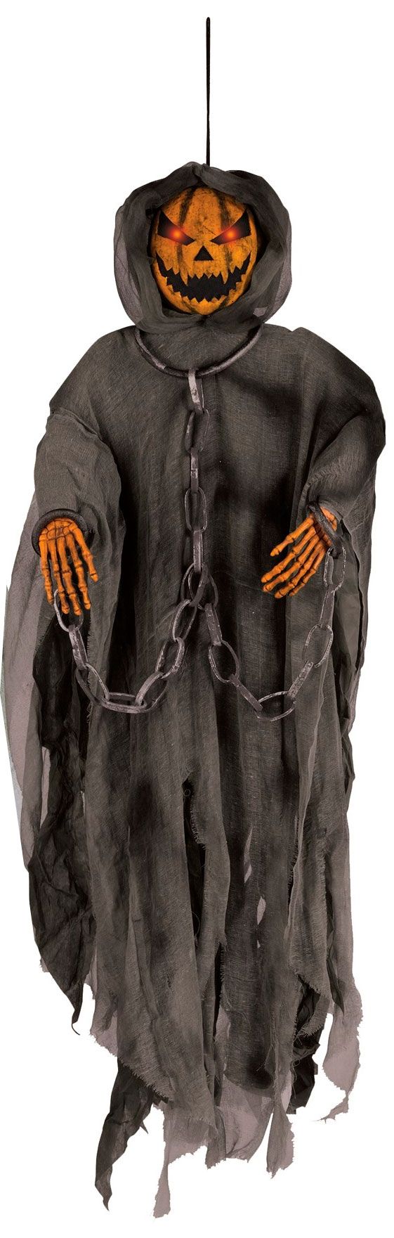 Тыква одетый в черный рваный плащ с капюшоном приведет в ужас любого гостя!