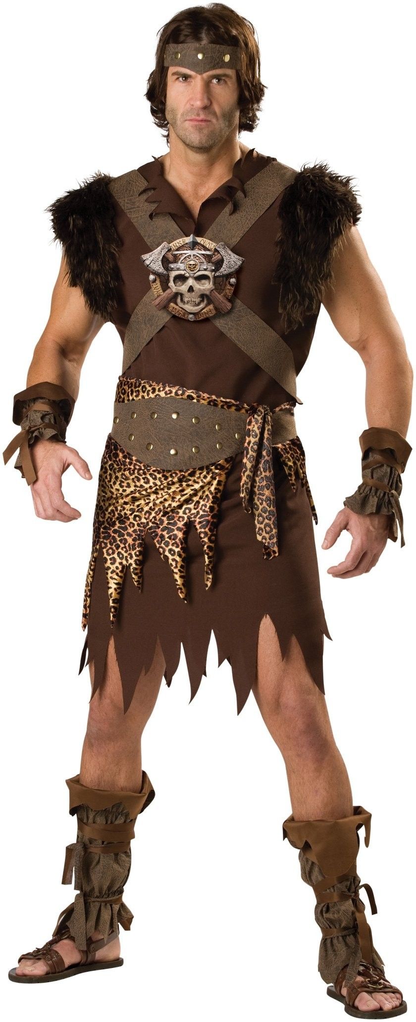 В костюм варвара входит: туника (100% полиэстер), пояс, ремень на талию, ремни на грудь, гетры, манжеты, украшение на голову.