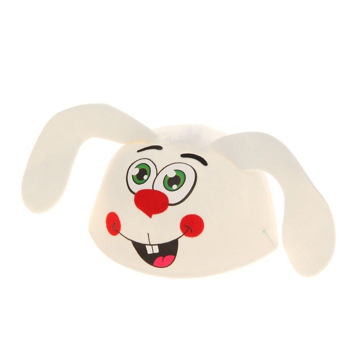 Шляпка Веселый зайчик - забавная фетровая шляпка белого цвета в виде мордочки улыбающегося зайки. Шляпа украшена большими ушками.