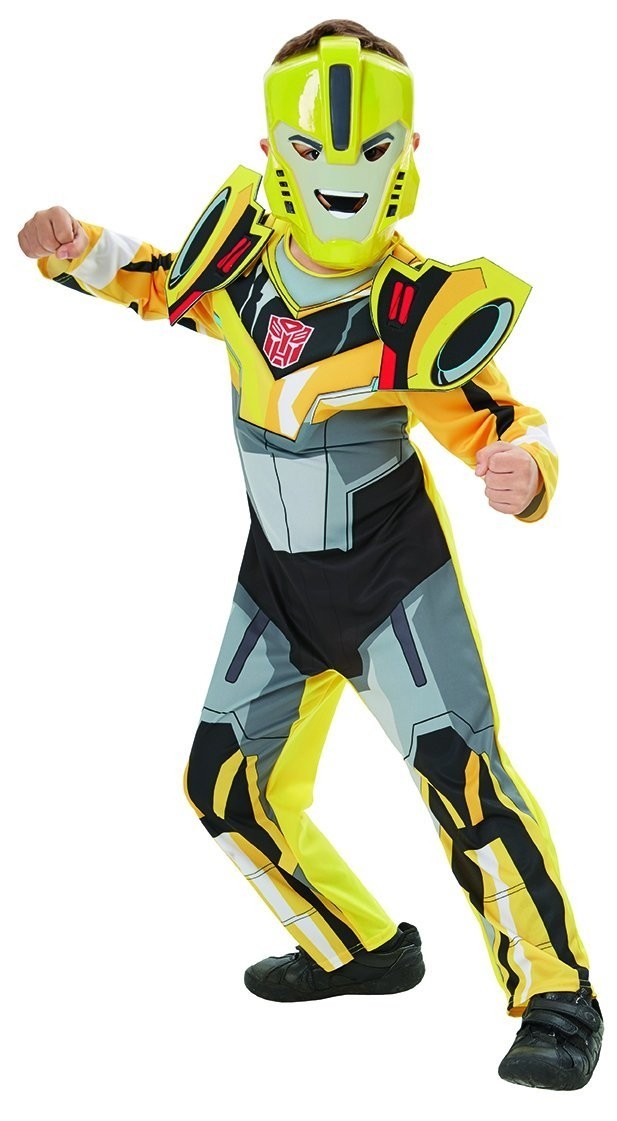 Детский костюм Бамблби Dlx - яркий костюм, который поможет создать образ знаменитого Трансформера Бамблби. Костюм включает в себя комбинезон с принтом, который имитирует броню Трансформера. Также броня из мягкого материала крепится к плечам. Дополняет комбинезон пластиковая желтая маска в виде шлема Трансформера Бамблби.
