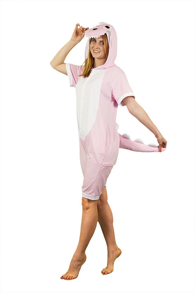 Пижама-кигуруми Розовый динозавр с шортиками - светло-розовая пижама, которая прекрасно подойдет для косплея, а также просто для сна.