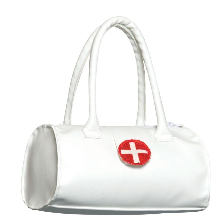 Сумочка медсестры - это прекрасное дополнение к костюму медсестры или сиделки. Сумочка выполнена в белом цвете, на ней имеется аппликация - красный кружок с белым крестиком.