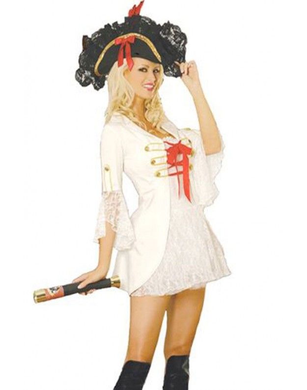Очень красивый и элегантный костюм подружки пирата.В комплект входит: белый комзол с шнуровкой и кружевное мини-платье.Рекомендуем приобретать вместе с шляпой.