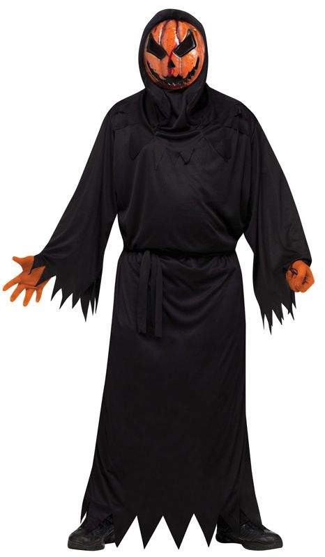 Костюм кровавой злой тыквы состоит из длинного балахона чёрного цвета, кровавой маски с капюшоном (в маску встроены трубочки для подачи крови) и перчаток. Маска сделана в оранжевом цвете. Этот костюм прекрасно подойдёт для Хэллоуина, и можете быть уверенны, что этот костюм будет одним из самых лучших на вечеринке.