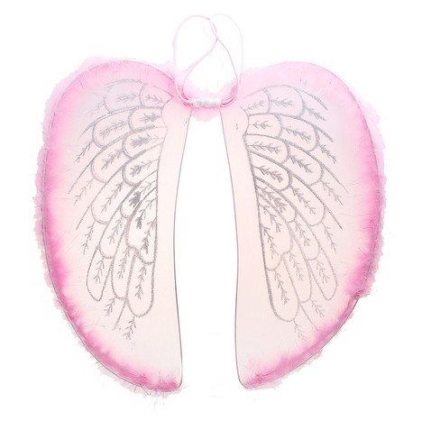 Розовые крылья ангела с блестками, образующими узор в виде перьев, добавят Вашему образу нежности. Края крыльев украшены розовым пухом.