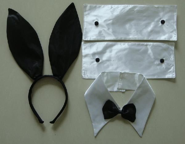Очень красивые черные ушки кролика из Playboy в комплекте с накладками на руки и бантом на шее.