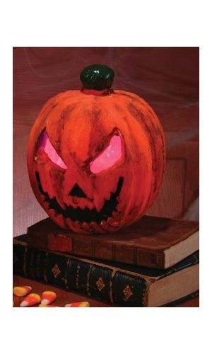 Злобная тыква с источником света, расположенным внутри, выглядит немного зловеще и страшно в полной темноте. Батарейки включены в комплект. Высота тыквы 17 сантиметров.