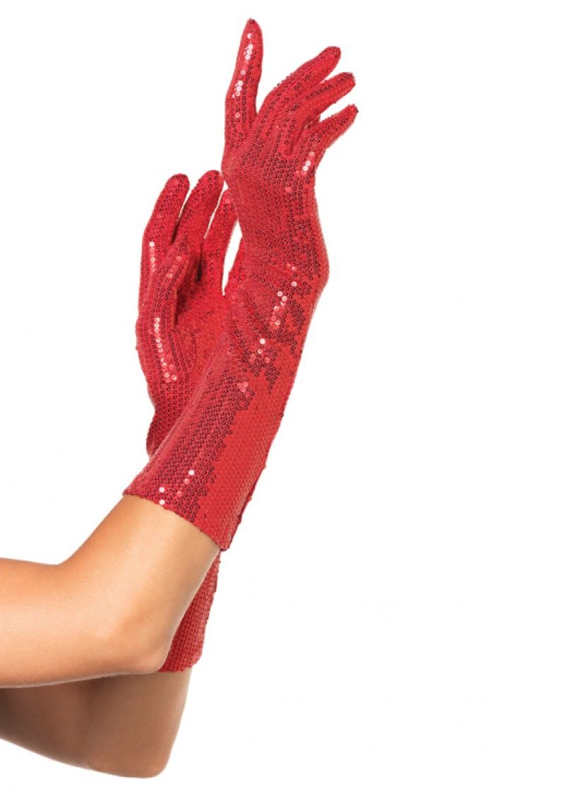 Красные перчатки с пайетками идеально подходят для вечерних платьев и других красных костюмов. Перчатки полностью украшены красными блестящими пайетками.