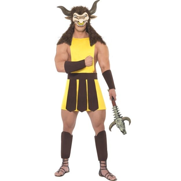 Хороший Костюм Минотавра помогает вжиться в роль, создать неповторимую атмосферу античного мира. В комплект входит: туника, пояс, накладки на запястья, поножи и головной убор.